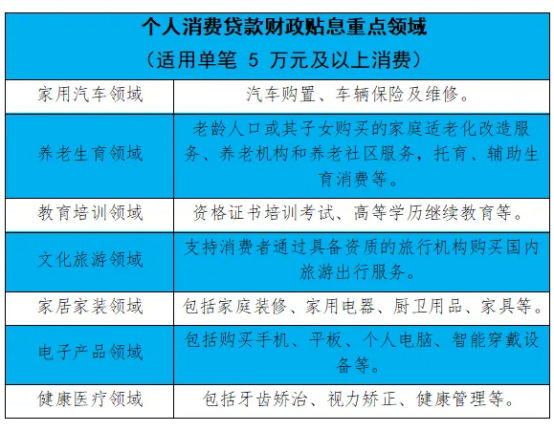 財(cái)政部、中國人民銀行、金融監(jiān)管總局印發(fā)《個(gè)人消費(fèi)貸款財(cái)政貼息政策實(shí)施方案》,2025年9月1日至2026年8月31日期間,居民個(gè)人使用貸款經(jīng)辦機(jī)構(gòu)發(fā)放的個(gè)人消費(fèi)貸款(不含信用卡業(yè)務(wù))中實(shí)際用于消費(fèi),且貸款經(jīng)辦機(jī)構(gòu)可通過貸款發(fā)放賬戶等識(shí)別借款人...